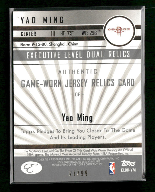 2006-07 Bowman Elevation Executive Level Relics Dual (99) Yao Ming #/99 #ELDR-YM