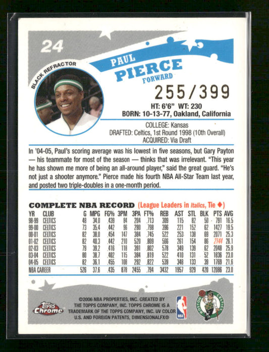 2005-06 Topps Chrome Refractors Black Paul Pierce #/399 #24