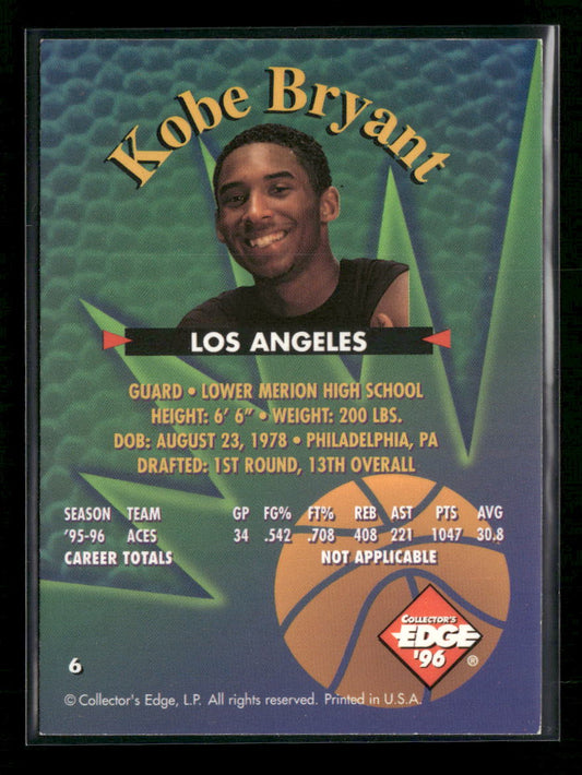 1996 Collector's Edge Rookie Rage Kobe Bryant #6